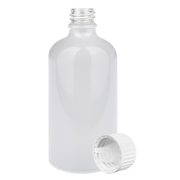 Flacone contagocce da 100 ml con tappo a vite standard bianco (apertura 0,9 mm) WhiteLine UT18/100