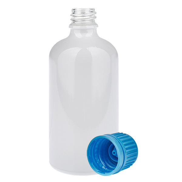 Flacone da 100 ml con tappo di sicurezza blu (apertura 11 mm) WhiteLine UT18/100