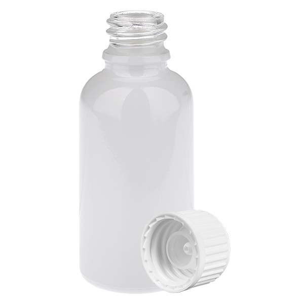 Flacone da 30 ml (globuli) con tappo a vite standard bianco (apertura 3 mm) WhiteLine UT18/30