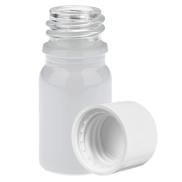 Flacone da 5 ml con tappo a vite standard bianco con chiusura di sicurezza per bambini (apertura 11 mm) WhiteLine UT18/5