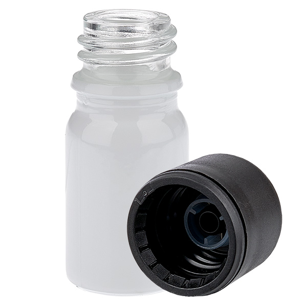 Flacone da 5 ml con tappo di sicurezza nero (apertura 6 mm) WhiteLine UT18/5