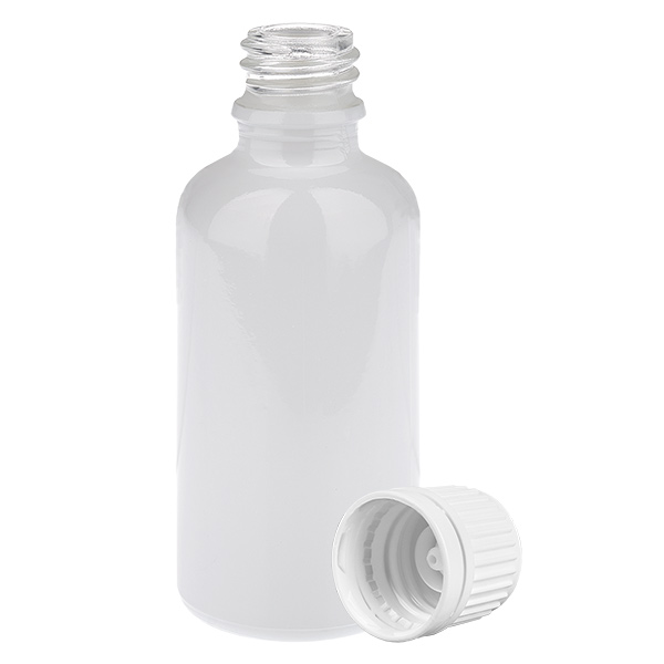- Descrizione del flacone in vetro: tipo di vetro III (DIN 719 o classe di contenitori III secondo DIN 52339-TO180). Il vetro trasparente viene rivestito con un bianco brillante all'esterno mediante un processo complesso. Ciò garantisce una presentazione di alta qualità del contenuto. È possibile vedere il livello di riempimento del vetro. Il contenuto è comunque protetto dalla luce solare diretta.