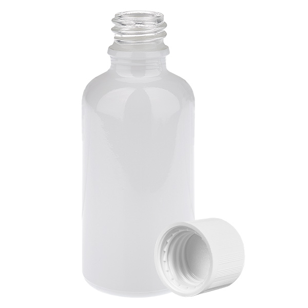 - Descrizione del flacone in vetro: tipo di vetro III (DIN 719 o classe di contenitori III secondo DIN 52339-TO180). Il vetro trasparente viene rivestito con un complesso procedimento che conferisce alla superficie esterna un colore bianco brillante. Ciò garantisce una presentazione di alta qualità del contenuto. È possibile vedere il livello di riempimento del vetro. Il contenuto è comunque protetto dalla luce solare diretta.