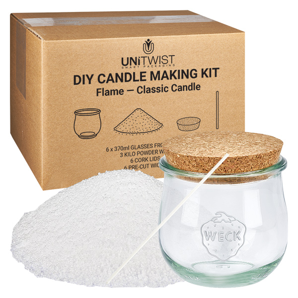 Il kit per candele “GlowGrand” di UNiTWIST® è la versione più grande del nostro set fai da te per candele, ideale per candele di grandi dimensioni con una durata di combustione particolarmente lunga.