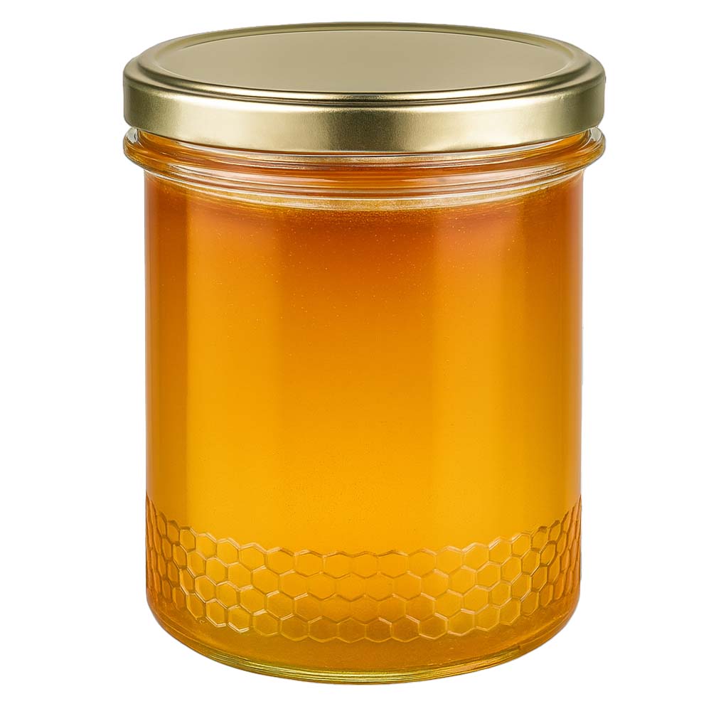 Vasetto per miele da 400 g con capsula dorata BioSeal UNiTWIST