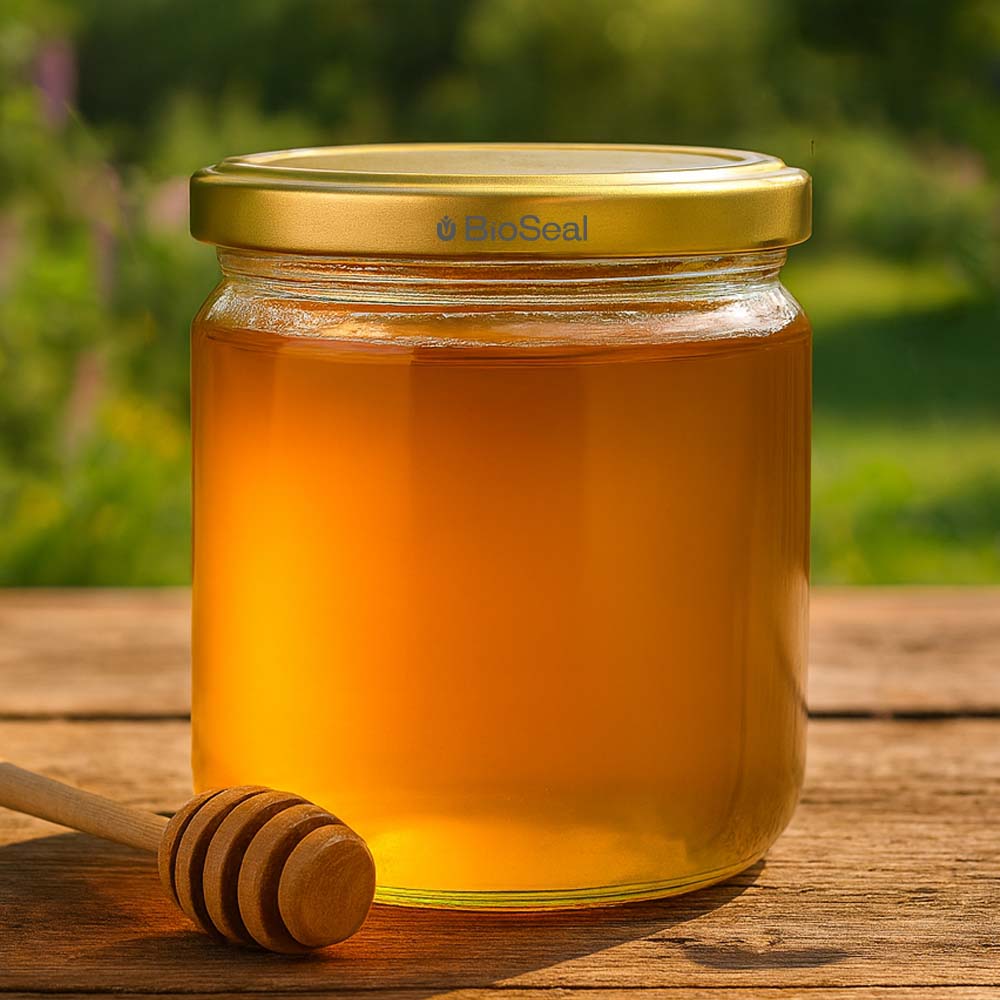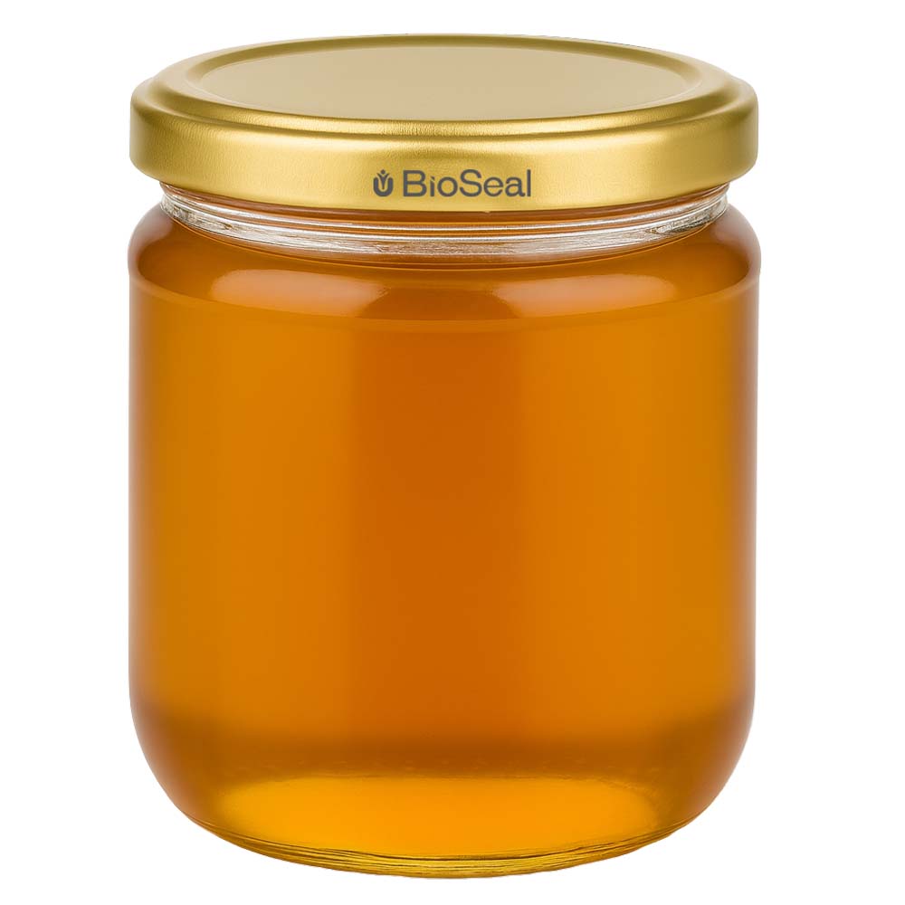 Vasetto per miele da 500 g con capsula dorata BioSeal UNiTWIST