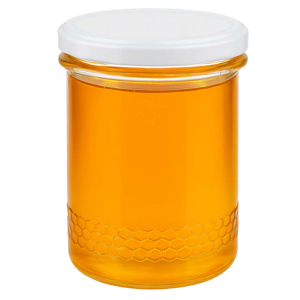 Vasetto per miele da 560 g con capsula bianca BasicSeal UNiTWIST